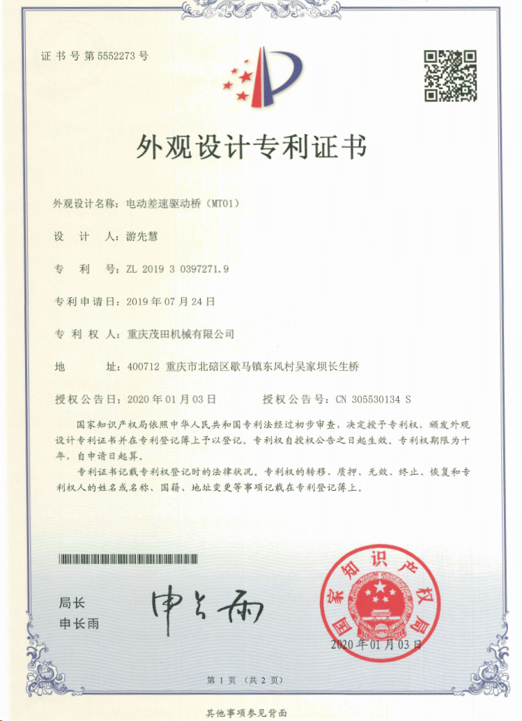 重慶茂田機械有限公司是國家級小巨人企業(yè)、國家高新技術(shù)企業(yè)、重慶市專精特新企業(yè)、重慶市知識產(chǎn)權(quán)優(yōu)勢企業(yè),致力于現(xiàn)代化山地農(nóng)業(yè)機械、各類非標減速電機及其控制系統(tǒng)的研發(fā)、生產(chǎn)、銷售。擁有重慶市市級研發(fā)平臺1個 目前研發(fā)、生產(chǎn)、銷售產(chǎn)品廣泛應(yīng)用于農(nóng)業(yè)機械、醫(yī)療康復(fù)設(shè)備、交通代步工具、智能搬運設(shè)備、以及機器人動力系統(tǒng)等領(lǐng)域。我們的產(chǎn)品具有完整的自主知識產(chǎn)權(quán),擁有多項專利技術(shù)及“重慶